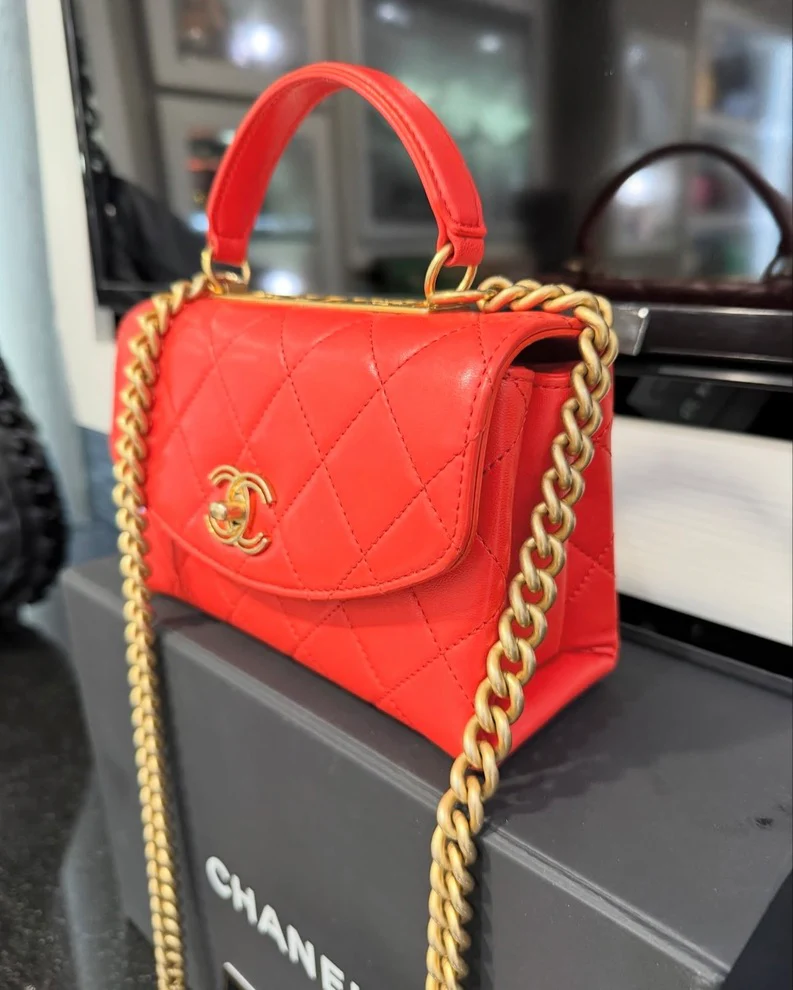 Pre-Owned Chanel Spirit Top Handle Bag – Coral Red Lambskin (2018-2019)