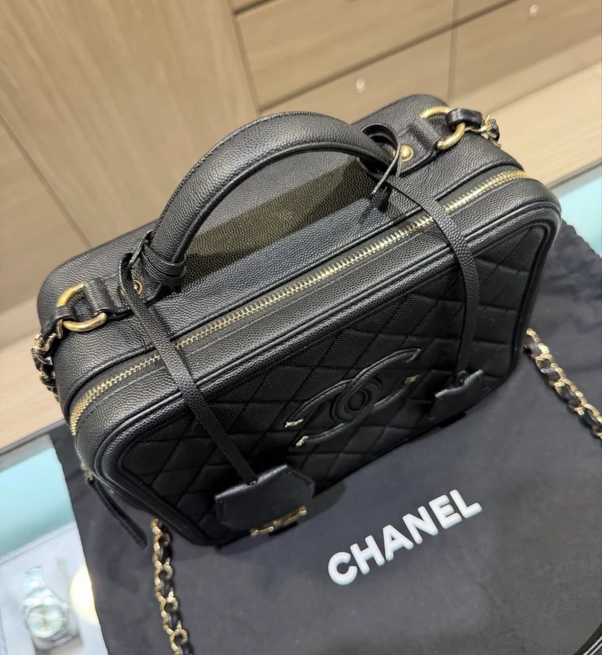 Pre-owned Chanel Filigree Large Vanity Bag caviar leather black with card (2020)