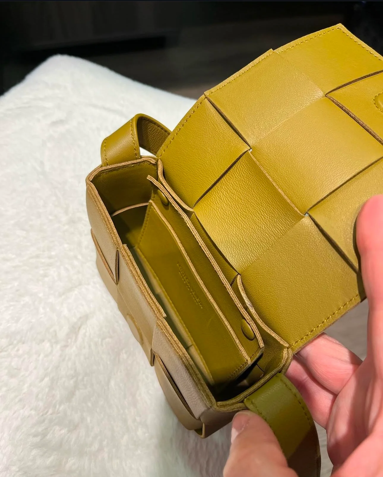 - Material: Soft leather with Bottega Veneta's signature woven intrecciato pattern, giving it a timeless and luxurious feel.