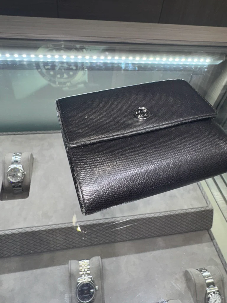 - Minor wear on the leather zipper tag of the coin pouch.