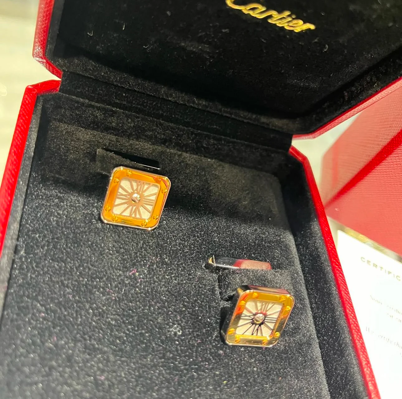 - Watch skeleton motif in solid 18K yellow gold (750/1000) and palladium-finish sterling silver 925/1000.